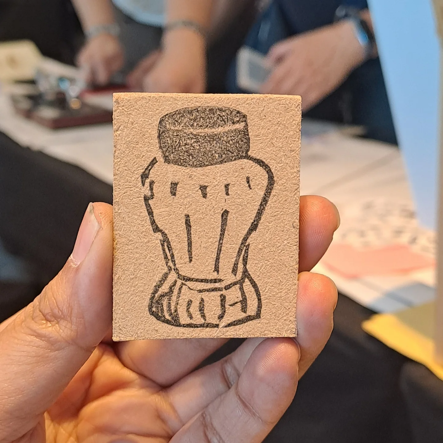 This handmade stamp is carved from carving blocks that will last a long time when used with care. To retain the details of the stamp, observe the following tips: